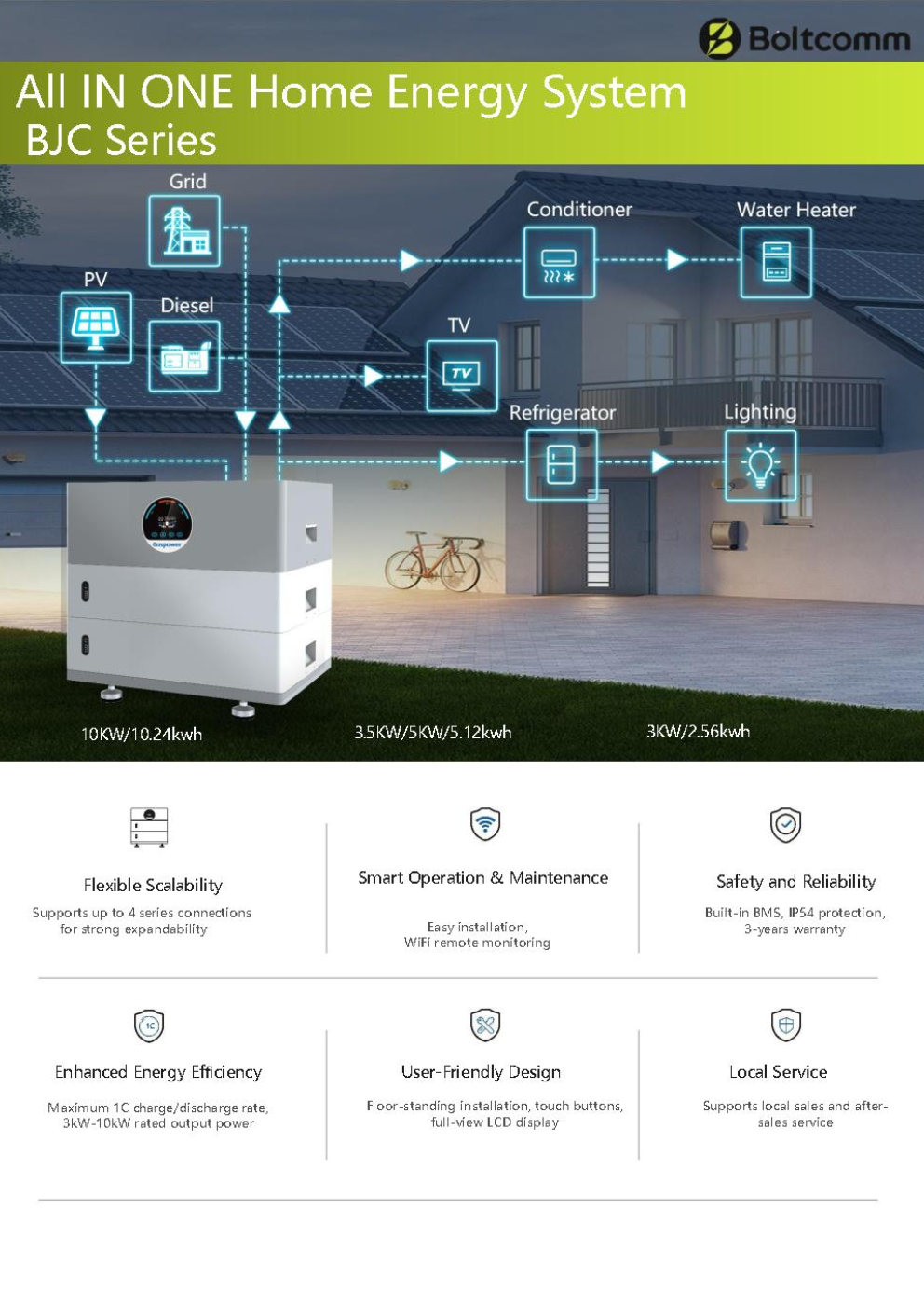 Solar-powered off-grid All in one home energy storage system(3-10K)(2.56-10.24KWH)